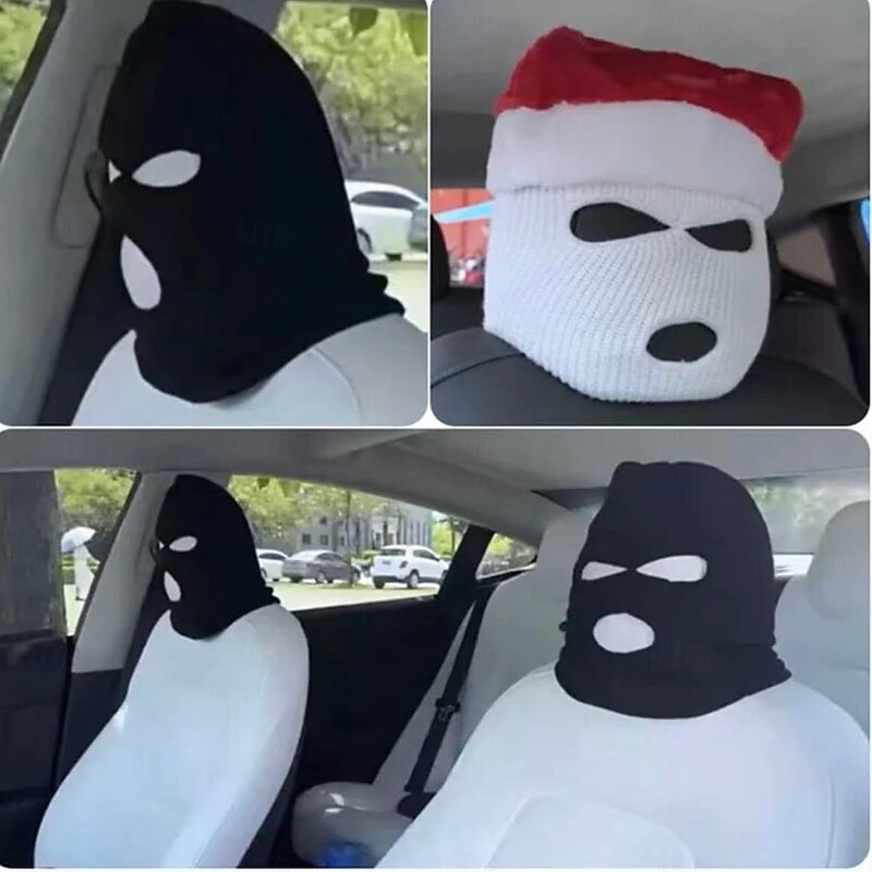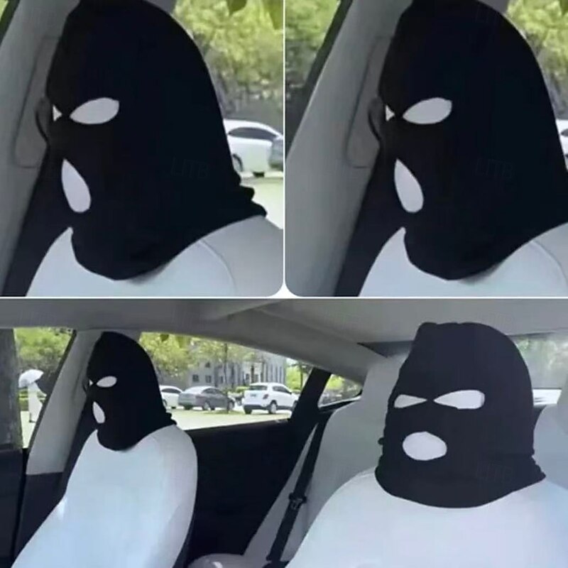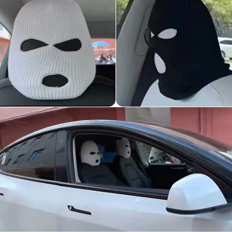 sought-after ! 2pcs Personalized Funny Hat for Car Seat Headcover, Universal Car Headrest Protector Covers, Funny Personality Car Interior Decoration, Black & White