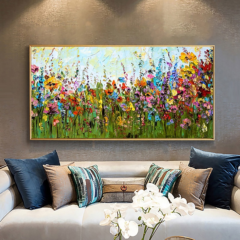 More information about Large Size Oil Painting 100% Handmade Hand Painted Wall Art On Canvas Horizontal Abstract Colorful Floral Landscape Home Decoration Decor Rolled Canvas No Frame Unstretched