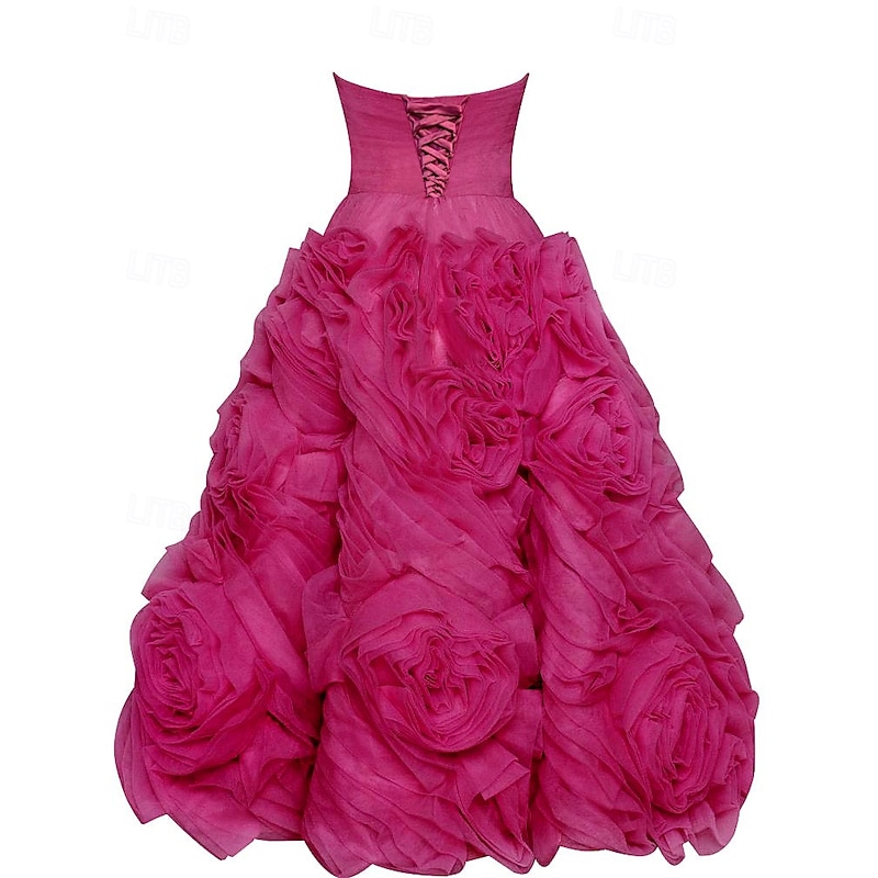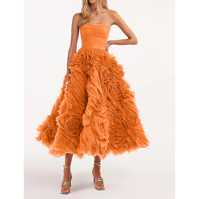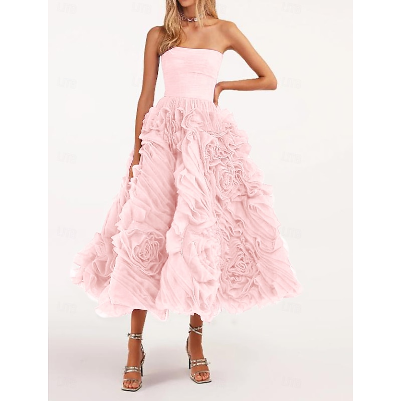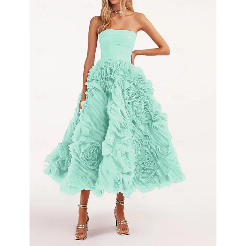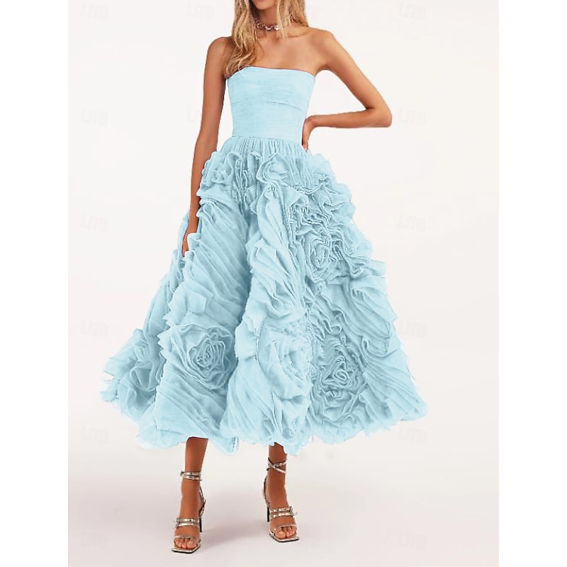 More information about Beach Wedding A-Line Prom Dresses Floral Dress Wedding Guest Quinceanera Ankle Length Sleeveless Strapless Tulle Backless with Ruched