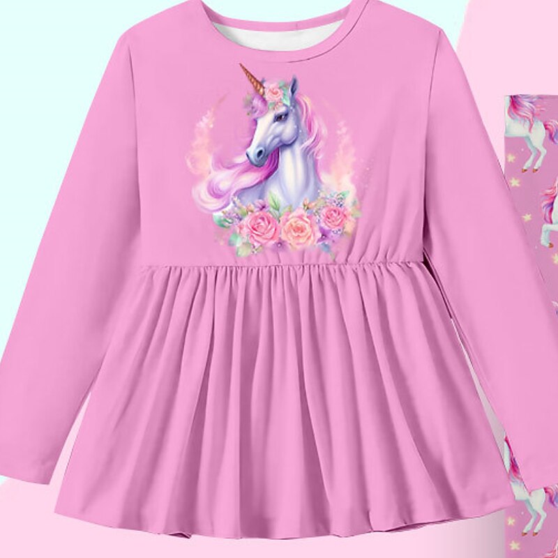 More information about Girls' 3D Graphic Cartoon Unicorn T-shirt & Pants Dress Set Clothing Set Long Sleeve 3D Print Spring Fall Winter Active Fashion Daily Kids 3-12 Years Outdoor Vacation Date Regular Fit