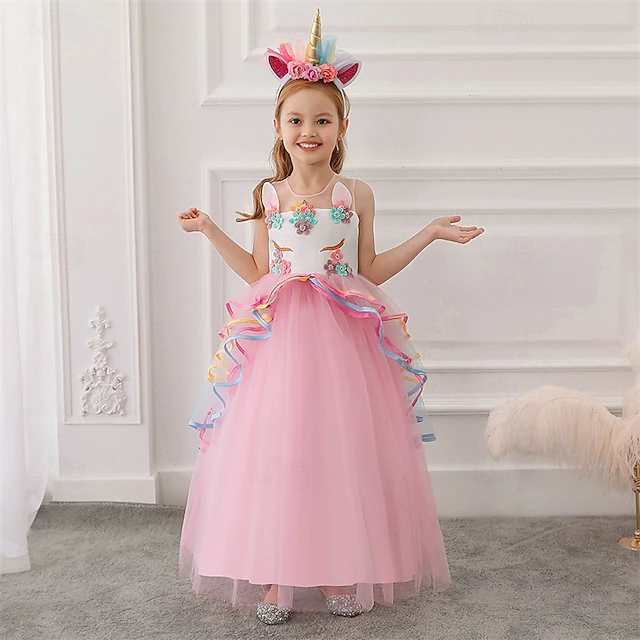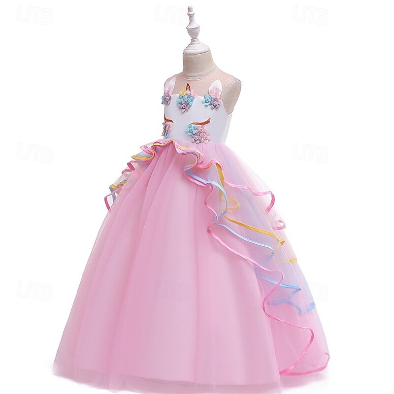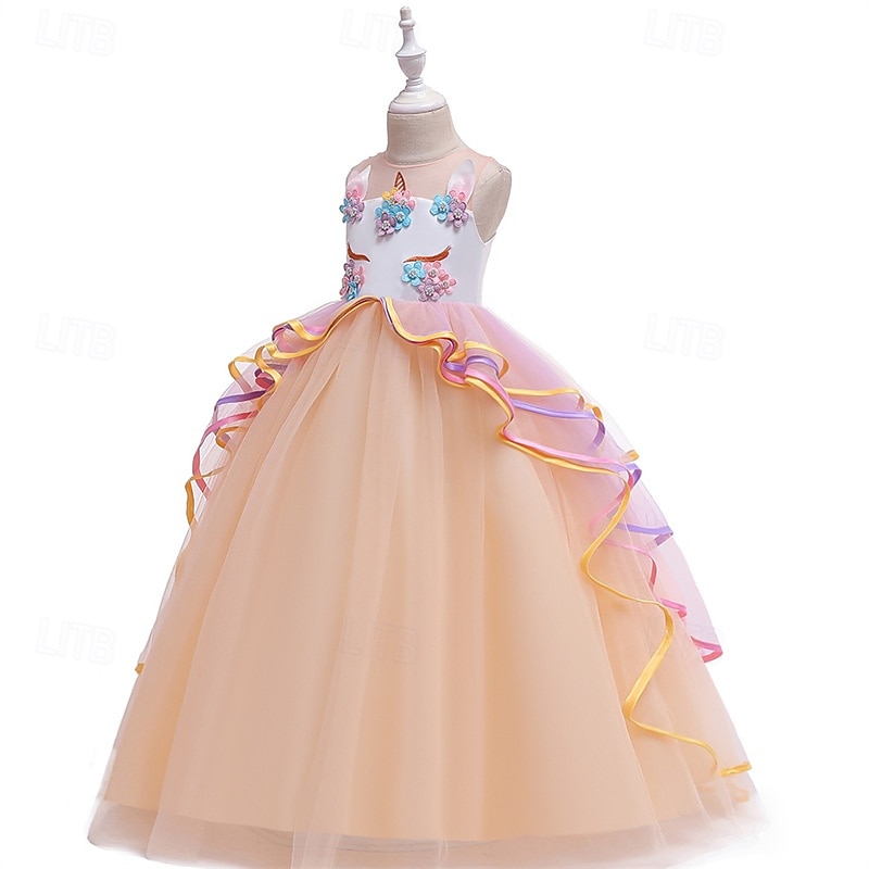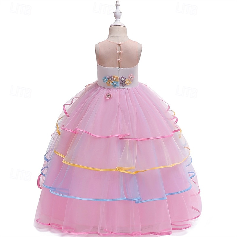 More information about Kids Girls' Party Dress Flower Sleeveless Performance Birthday Mesh charming Sweet Polyester Maxi Party Dress Swing Dress A Line Dress Summer 4-12 Years Champagne Pink Blue