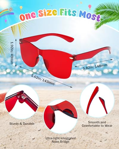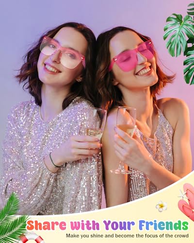 Party Glasses: With 10 pairs in a variety of candy-colored lenses, you'll have ample options to match any outfit or mood. These trendy, colorful glasses are the perfect fashion accessory to stand out in the crowd, whether for everyday wear or dazzling at parties. Lightweight, durable, and effortlessly fashionable, theyβre also a fantastic gift to share with friends. Elevate your look and shine wherever you goGreat Quality:These square sunglasses are made of finest PC material. Proper elasticity makes it not easy to break or deform. Lightweight and friendly to skin, easy to carry out and wearing them for a long time will not bring burden to your nose. Sturdy and durableWide Applications: These fun party sunglasses are great stuffs for daily wear, bachelorette party, bridal shower, wedding, pool party, beach vacation, festival celebration, or just for fun. Great photo props and gift choicesOne Size Fits Most: Lens Height: 49mm/1.9in; Nose Bridge: 20mm/0.78in; Temple Length: 148mm/5.83in; Frame Length: 143mm/5.63in. Suitable for most teens and adultsAfter-Sales Service: If you have any dissatisfaction with our party sunglasses for women, please do not hesitate to contact us. We will try our best to provide every customer with good service and satisfactory shopping experience Perfect for everyday use. High quality materials and excellent craftsmanship ensure long-lasting durability.