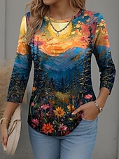 sought-after ! Women's T Shirt Graphic Scenery Fashion up-to-date Casual Long Sleeve Crew Neck Round Neck Regular Tops Daily Weekend Print Pink Red Blue Orange Spring Fall Winter