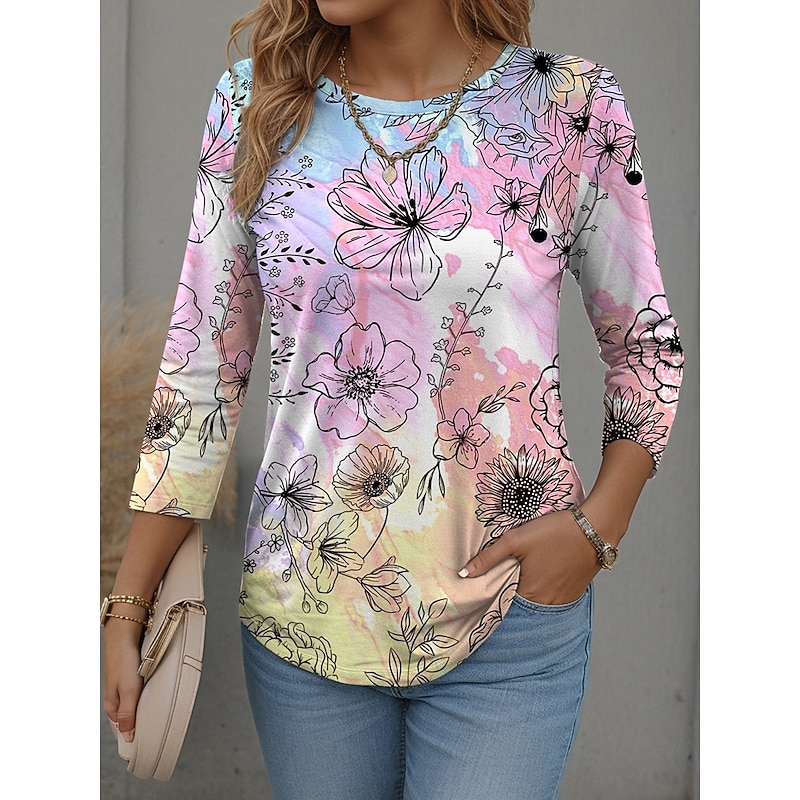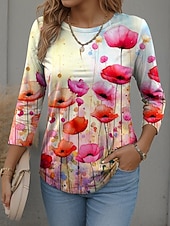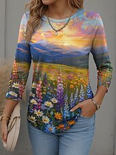 More information about Women's T Shirt Graphic Scenery Fashion current Casual Long Sleeve Crew Neck Round Neck Regular Tops Daily Weekend Print Pink Red Blue Orange Spring Fall Winter