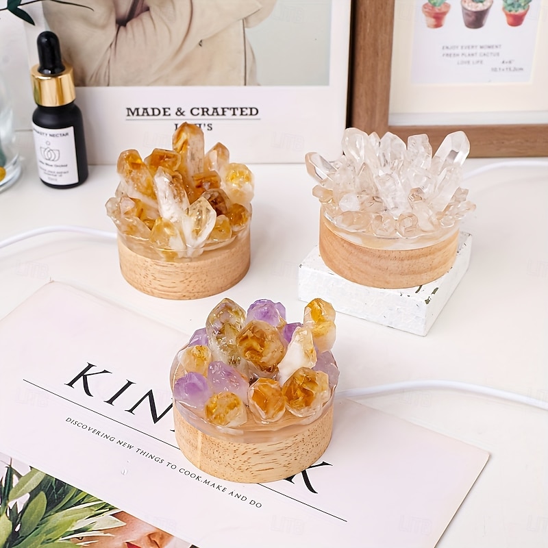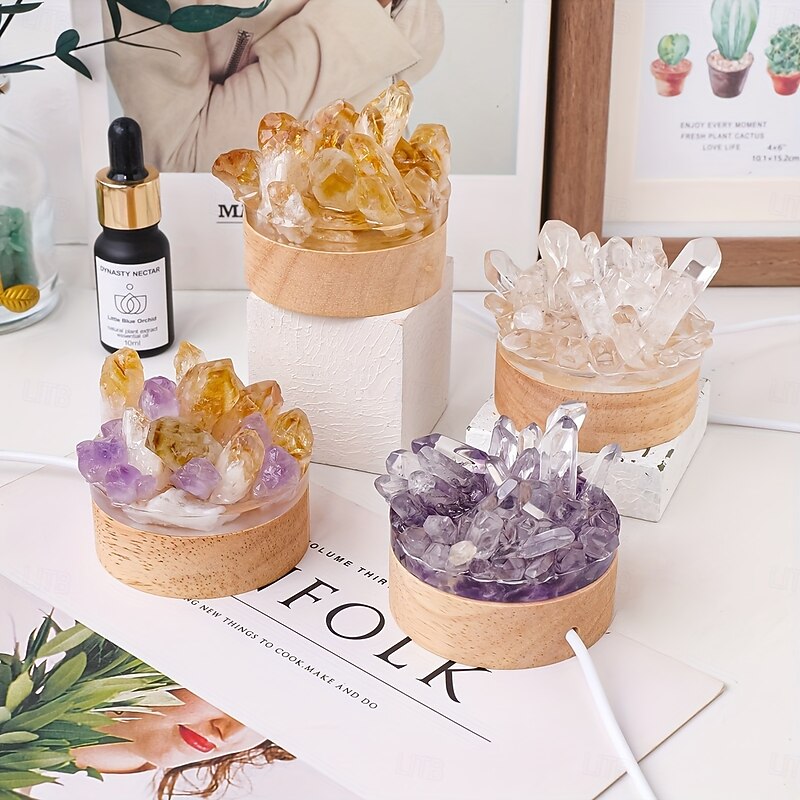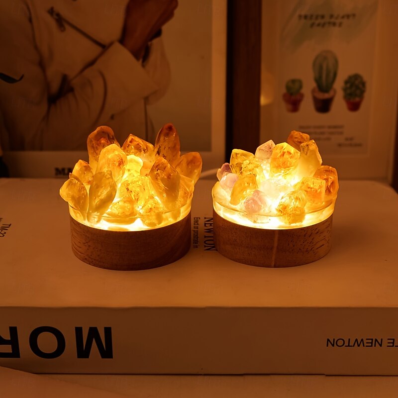 Why Choose Glam Style 1pc Natural Crystal Cluster Night Light - USB Powered Ambient Lamp Resin and Stone White Color Mode - Universal Holiday Gift for Home Desktop and Bedside Decor?