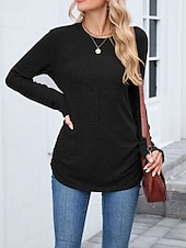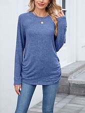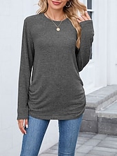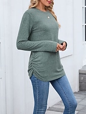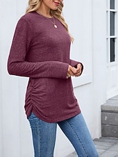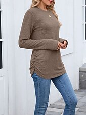 More information about Women's Texture Blouse T Shirt Plain Casual Long Sleeve Crew Neck Regular Tops Daily Weekend Black Wine Army Green Blue Brown Fall