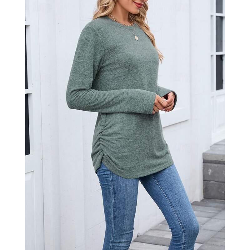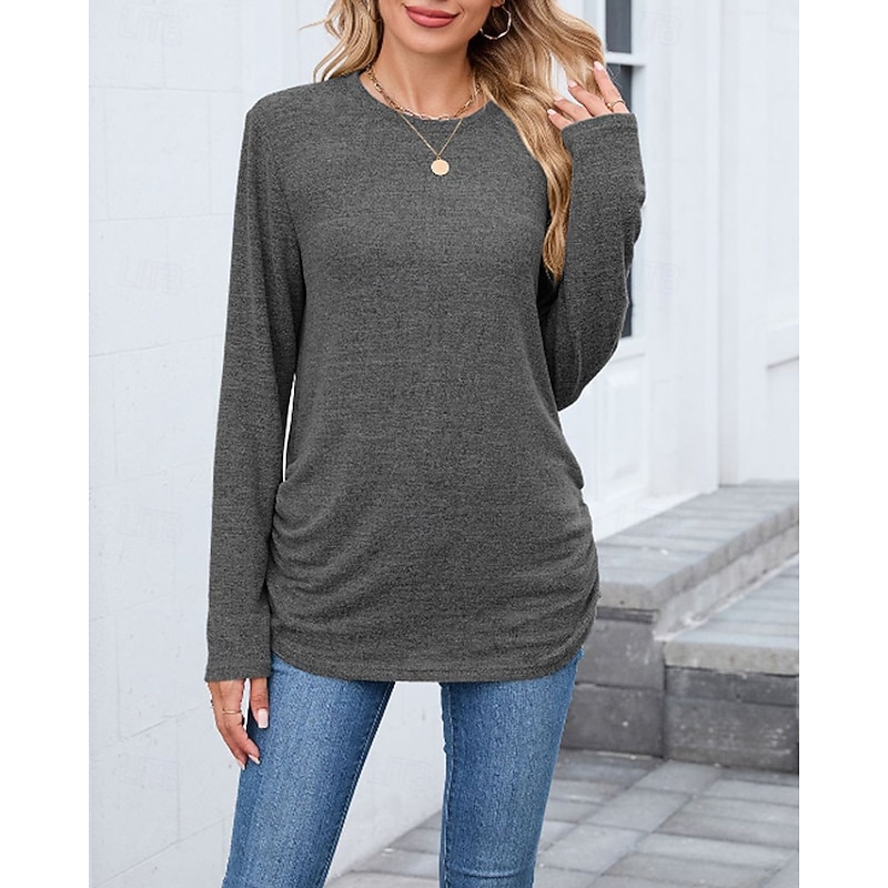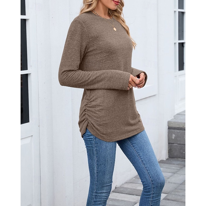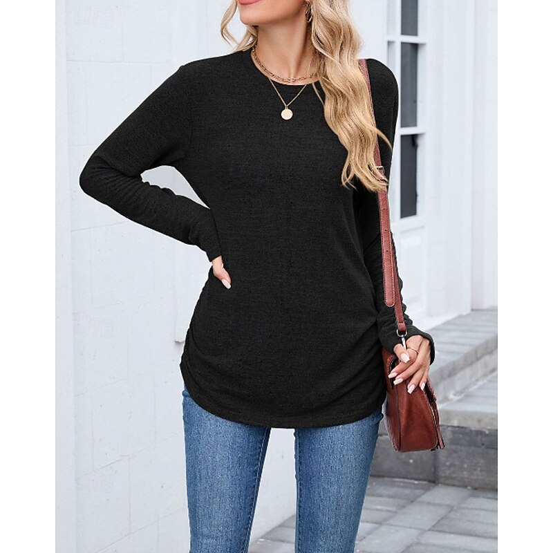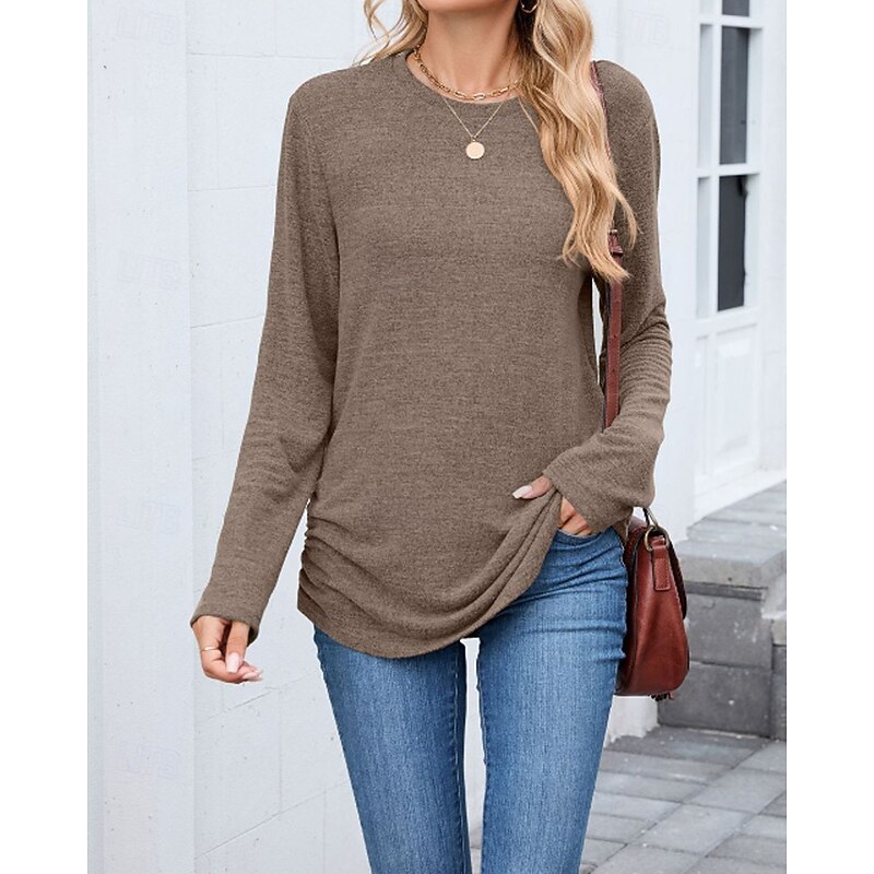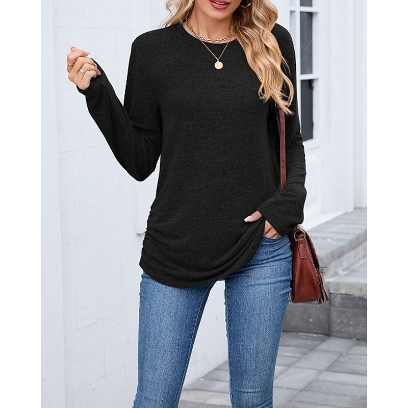 sought-after ! Women's Texture Blouse T Shirt Plain Casual Long Sleeve Crew Neck Regular Tops Daily Weekend Black Wine Army Green Blue Brown Fall