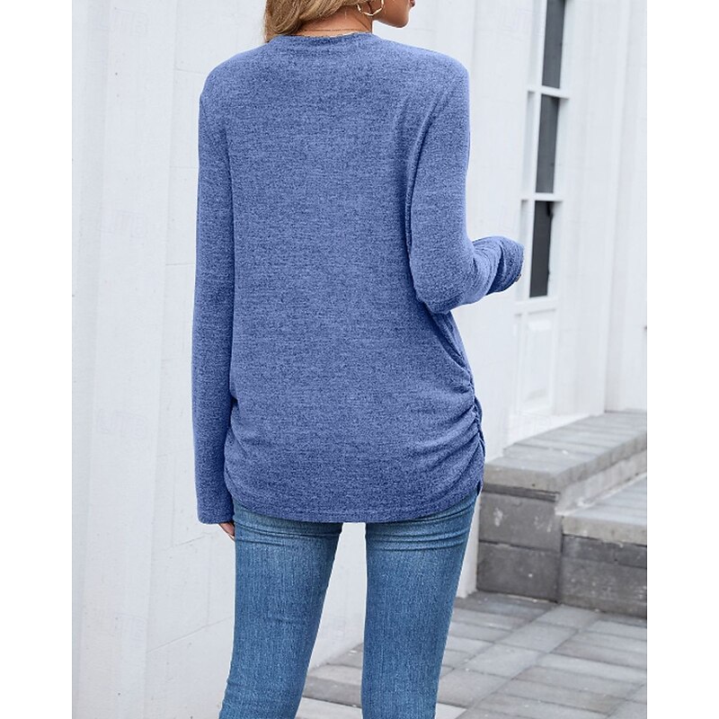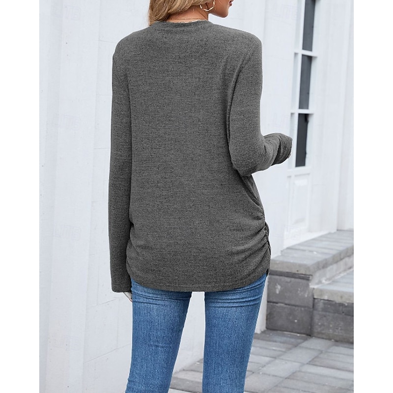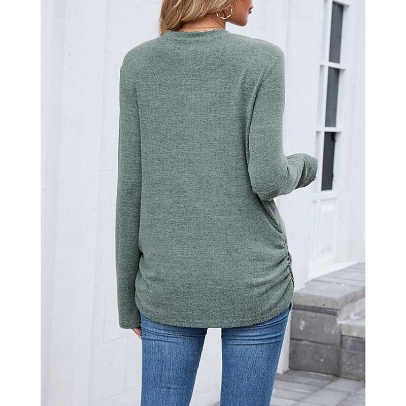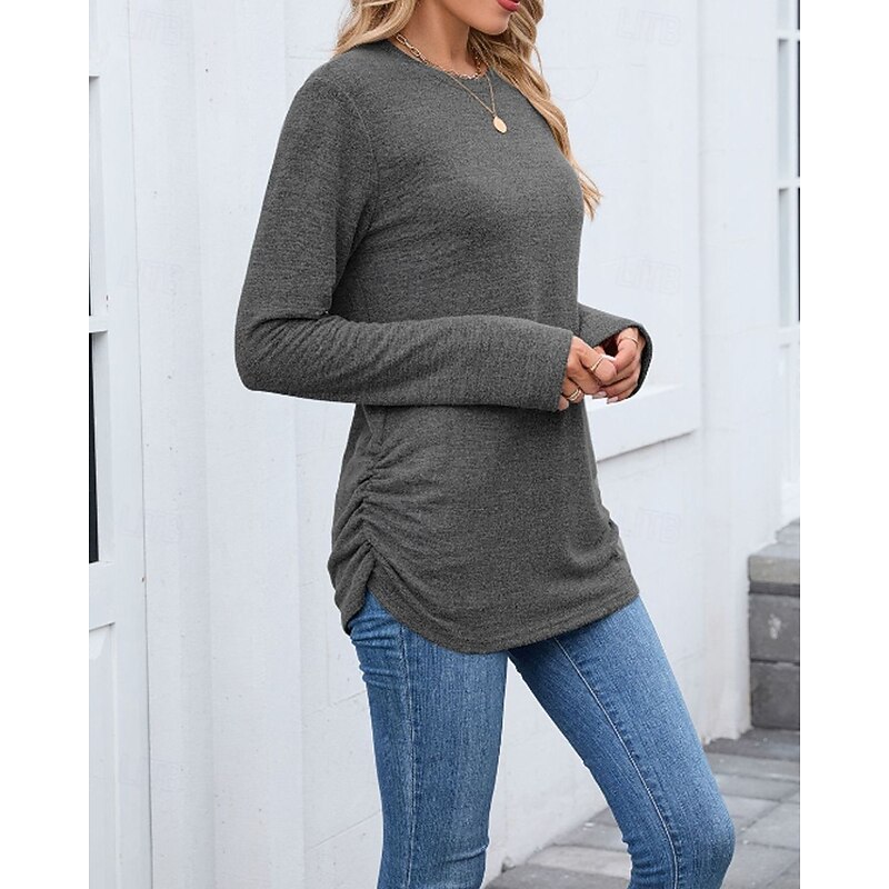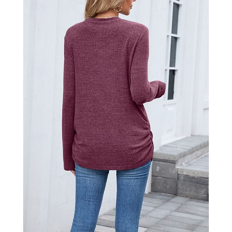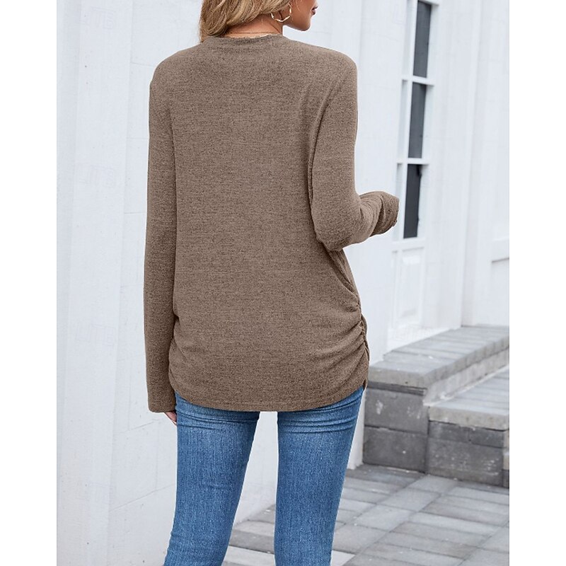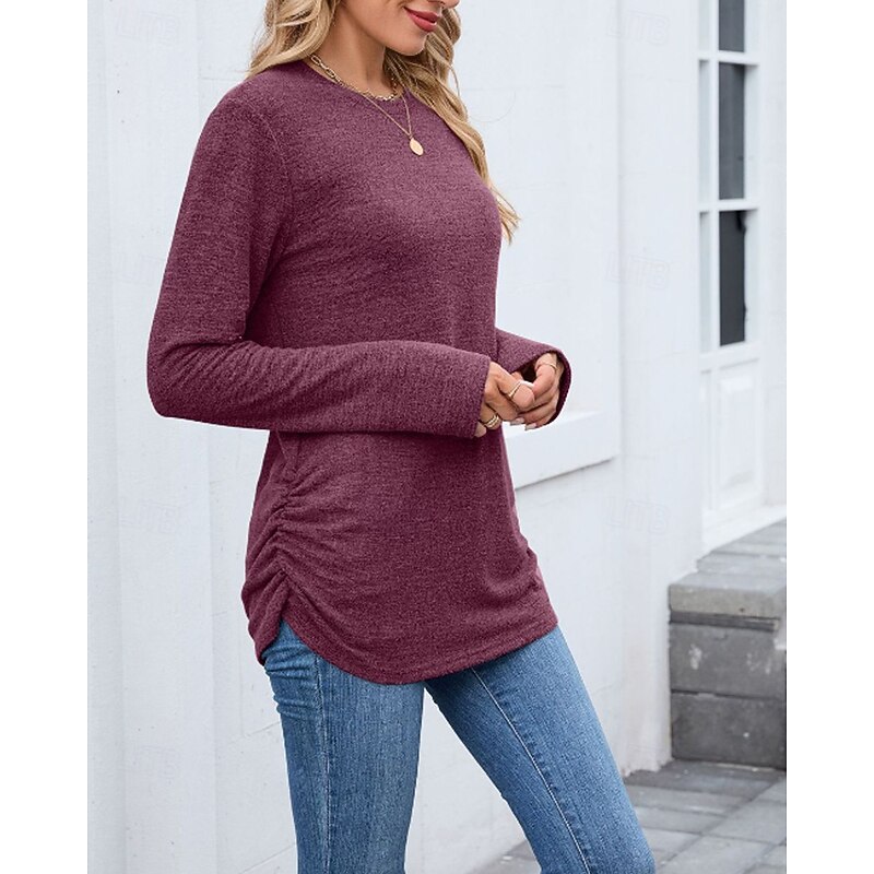 sought-after ! Women's Texture Blouse T Shirt Plain Casual Long Sleeve Crew Neck Regular Tops Daily Weekend Black Wine Army Green Blue Brown Fall