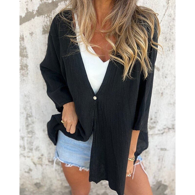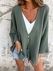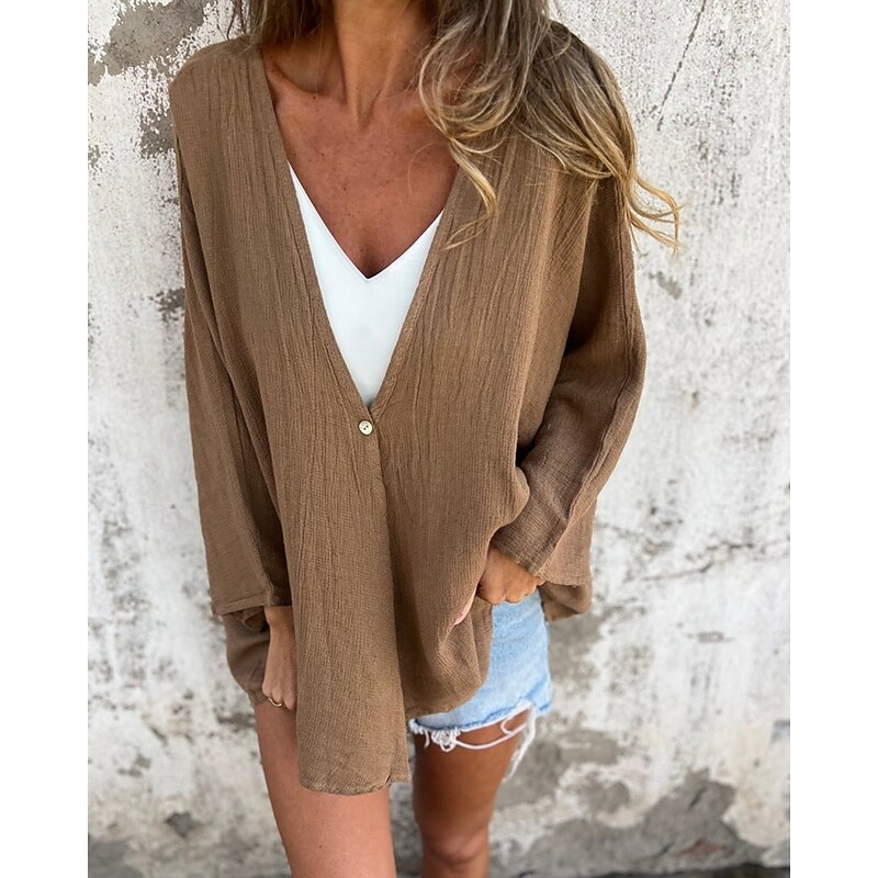 This Women's Shirt Texture Blouse Cotton Linen Shirt Plain sleek Modern Long Sleeve V Neck Regular Tops Daily Holiday Buttons Black Camel Brown Green Beige Spring Fall combines elegant design with practical functionality. Every detail has been carefully considered to ensure you get the best possible experience. The excellent construction means this product will serve you well for years to come.