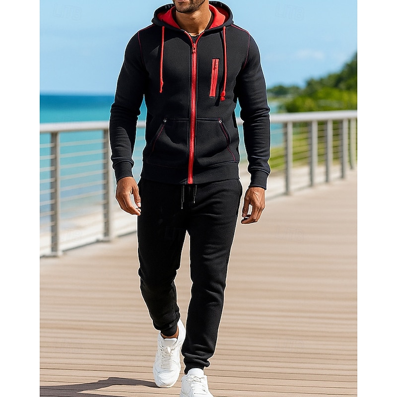 $32.99 - Men's 2 Piece Tracksuit Lounge Hoodie Sweatsuit Sets Drawstring Solid Colored Clothing Suit Fall Black Red Outdoor Travel Sports Moisture Wicking Long Sleeve Sport Activewear Micro-elastic Regular Fit 2025. Shop for cheap Tracksuits online? Buy at lightinthebox.com on sale today!