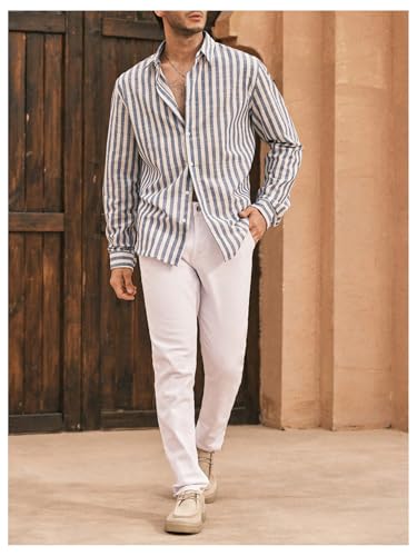 Why Choose SOLY HUX Men's Striped Button Down Long Sleeve Work Shirts retro Office Tops Vacation Outfit?