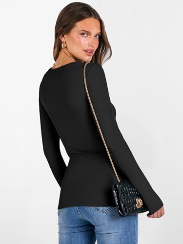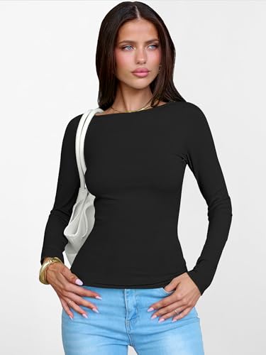 ANRABESS Women's Boat Neck Long Sleeve Shirts Rib Knit Slim Fitting Tops Basic Tees 2025 Casual Comfy Fall Outfits Clothes