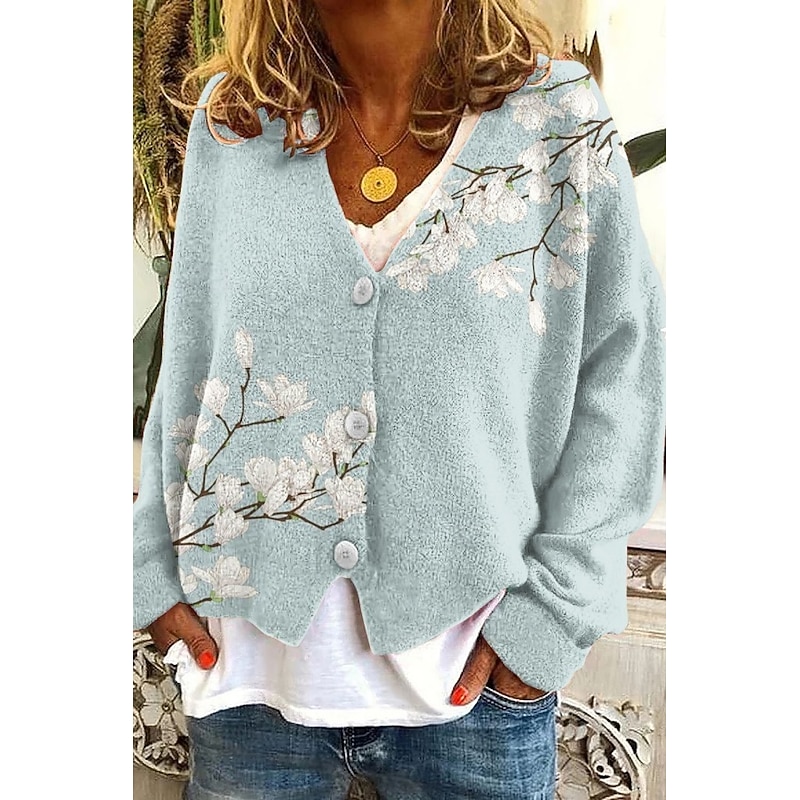 Why Choose Women's Cardigan Sweater Knitted Ribbed Button Front V Neck Long Sleeve Lightweight Elegant Streetwear Graphic Geometric Buttons Print Tops Knit Outdoor Daily Weekend Navy Blue Blue Spring Fall?
