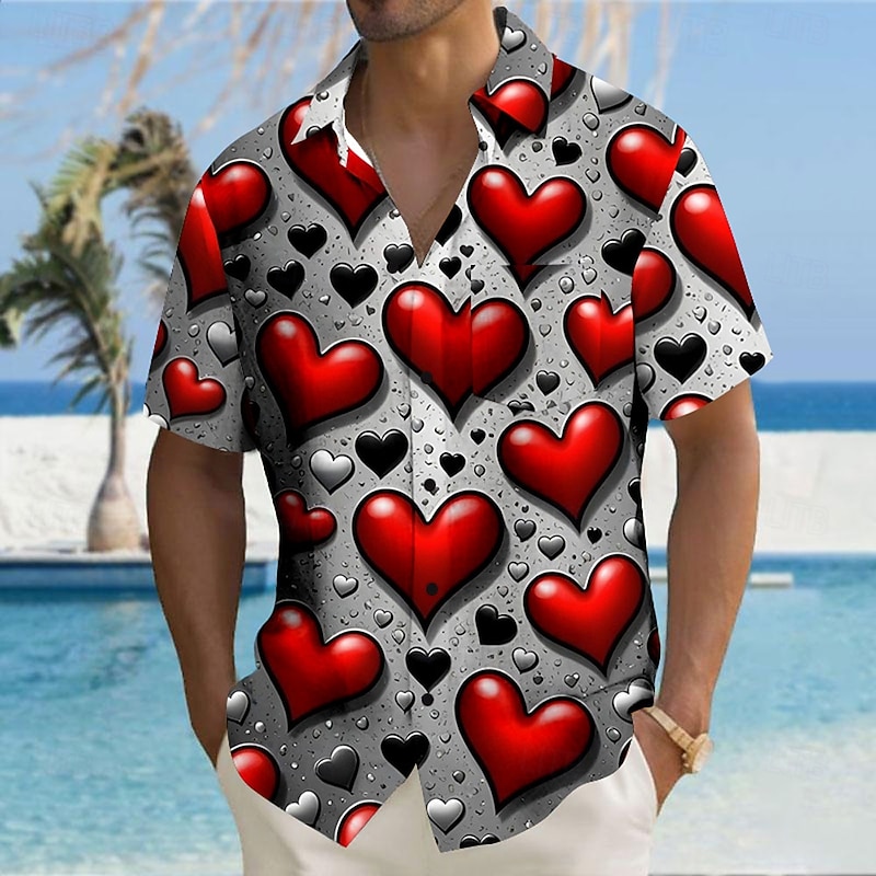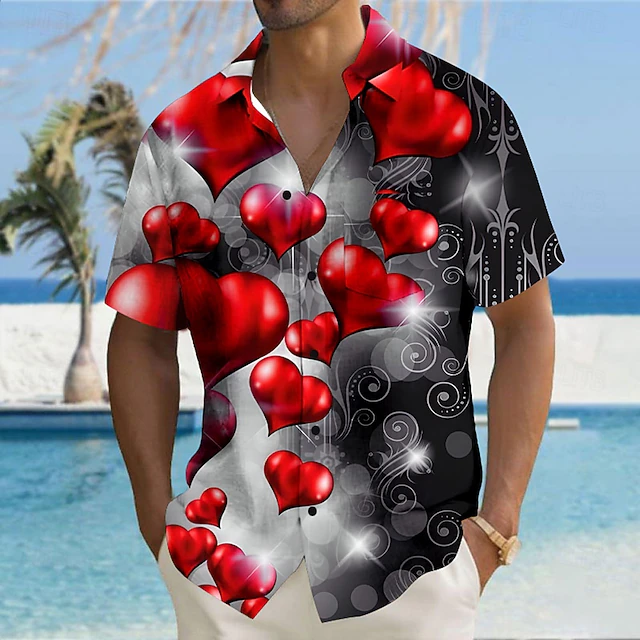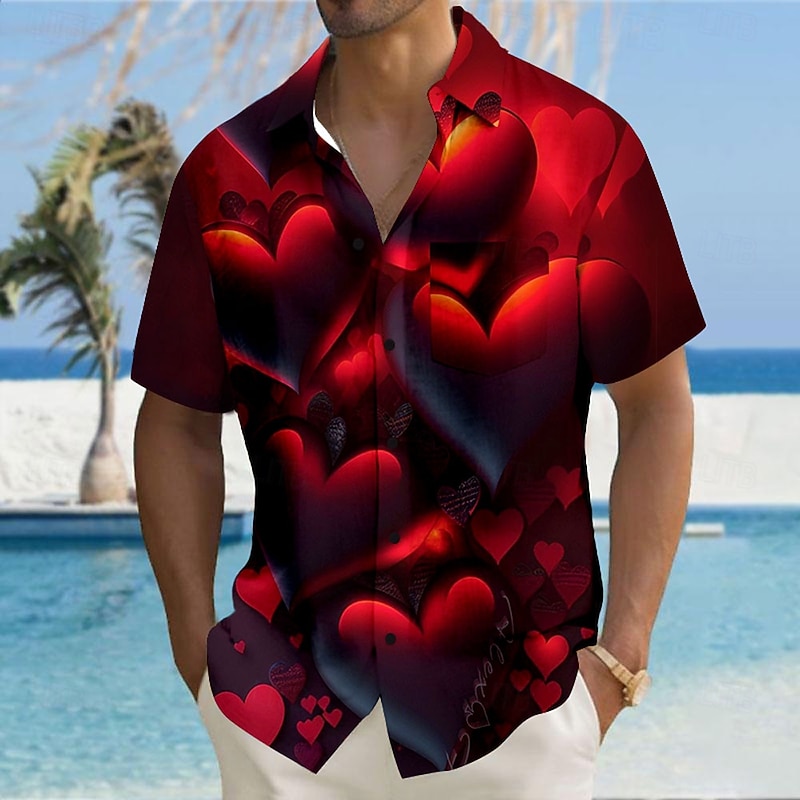 sought-after ! Valentine's Day Men's Heart treasure Gradient Color Shirt Button Up Shirt Short Sleeve Fashion Casual Vacation Gift Holiday Summer Fall Turndown 3D Print Violet Dark Red Blue 1# Red Light Black