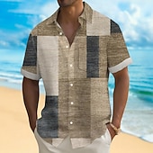 More information about Men's Geometric Color Block Patchwork Shirt Summer Shirt Button Up Shirt Short Sleeve Fashion Casual Vacation Holiday Streetwear Summer Turndown 3D Print Front One Pocket Linen prefer Shirt Black Khaki