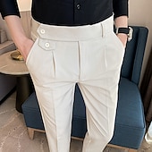 More information about Men's Graduation Dress Pants Trousers Pleated Pants Cuffed Dress Pants Pocket Expandable Waist Plain Comfort Breathable Wedding Business Casual Fashion elementary Black Green Micro-elastic