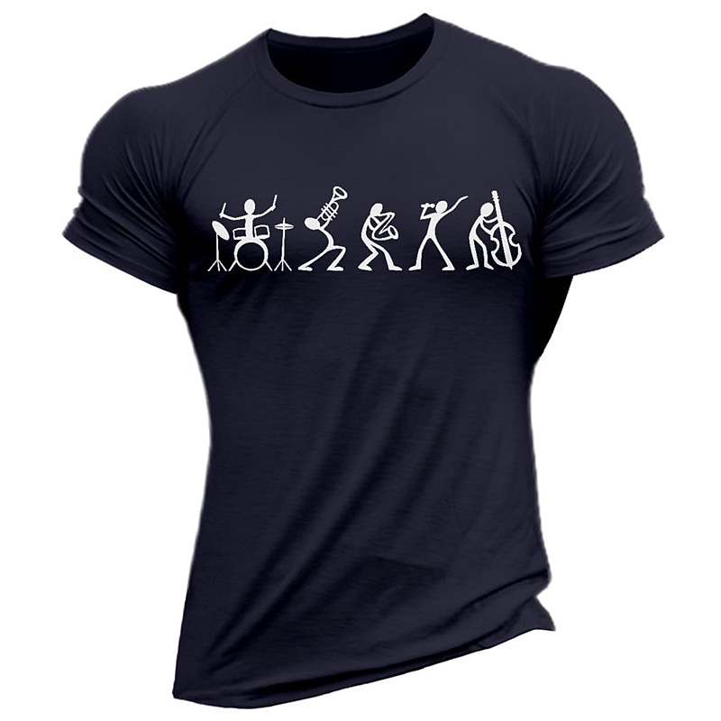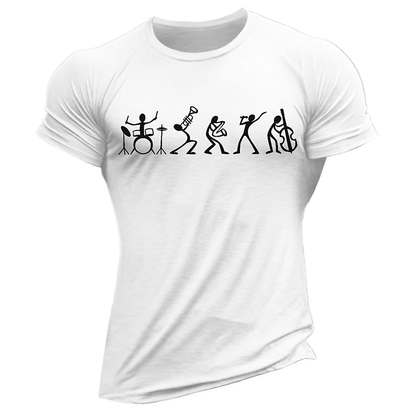 Men's Short Sleeve Graphic T-Shirt, Light Blue Music Band Stick Figure Design Casual Tee