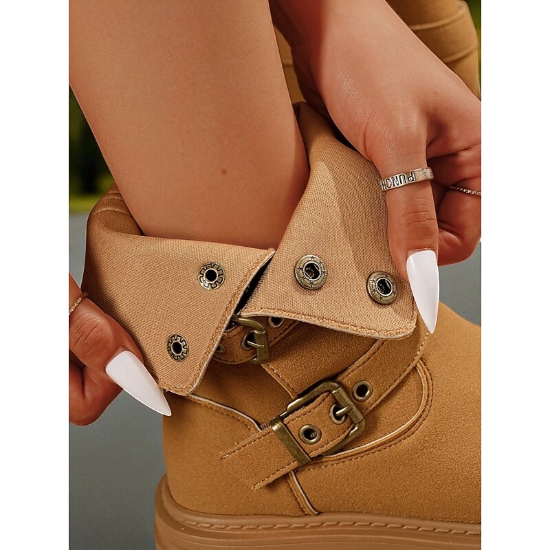 This Women's Camel Mid-Calf Boots with Double Buckle Straps and Chunky Lug Sole, snug Outdoor Riding Boots for Fall Winter Casual Wear combines elegant design with practical functionality. Every detail has been carefully considered to ensure you get the best possible experience. The excellent construction means this product will serve you well for years to come.