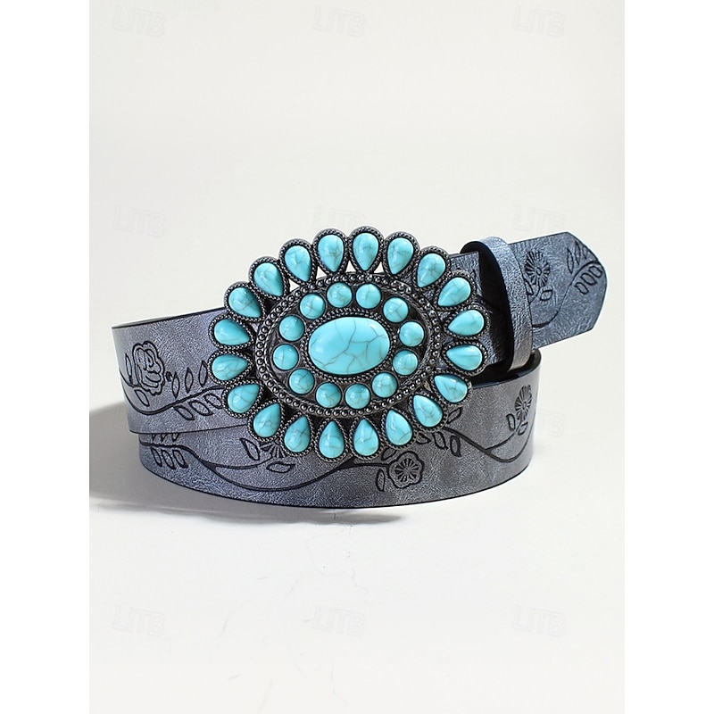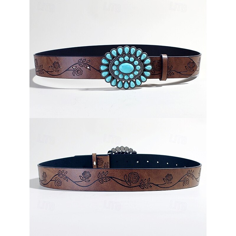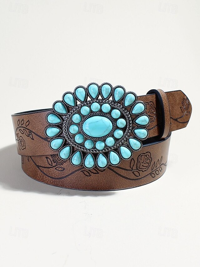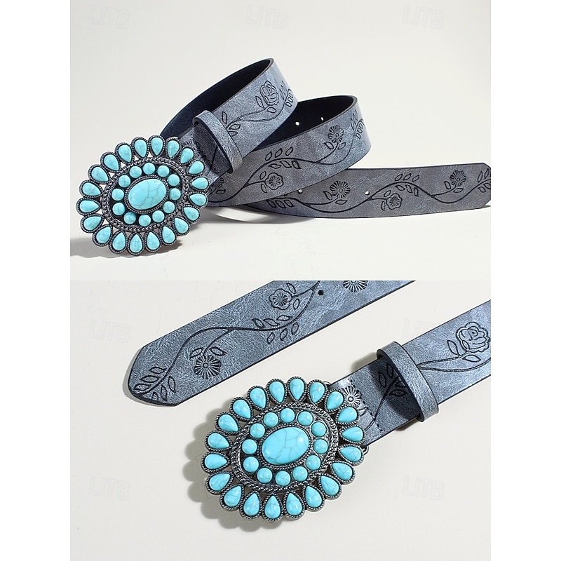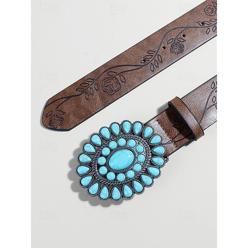 $14.99 - Women's Western Turquoise Concho Belt – Floral Engraved Faux Leather Waist Belt for Rodeo, Festivals, Boho Outfits & Casual Wear 2025. Shop for cheap Women's Belt online? Buy at lightinthebox.com on sale today!