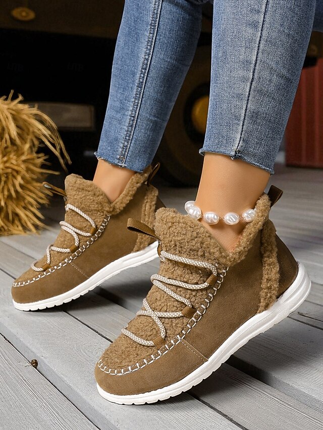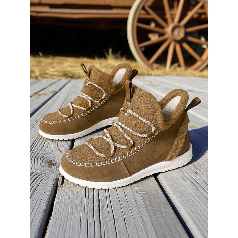 sought-after ! Women's Brown Faux Suede Fleece Lined Winter Boots – Lace-Up toasty Ankle Shoes, Casual Outdoor & Travel Footwear