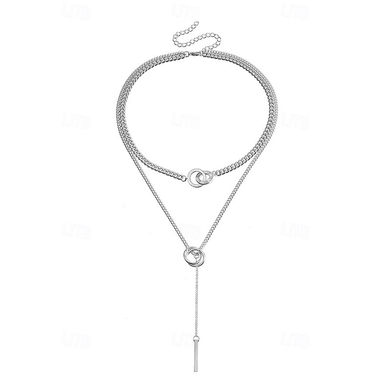 $7.99 - Layered Silver Chain Necklace with Circle and Bar Pendant, Minimalist Statement Jewelry for Women, Perfect for Parties, Dates, and Everyday Wear 2025. Shop for cheap Women's Necklace online? Buy at lightinthebox.com on sale today!