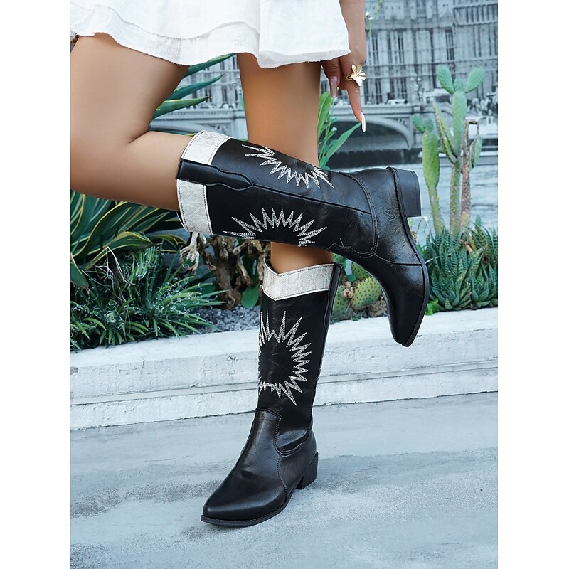 sought-after ! Women's White Embroidered Cowboy Boots – Western Mid-Calf Festival Boots with Starburst Design for Rodeo, Country Concerts, and Outdoor Events