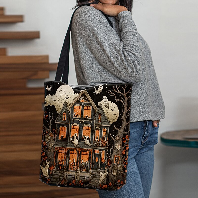 Why Choose Women's Halloween Haunted House Tote Bag – Large Capacity Ghost Print Shoulder Bag for Trick-or-Treating, Parties, and Fall Outings?