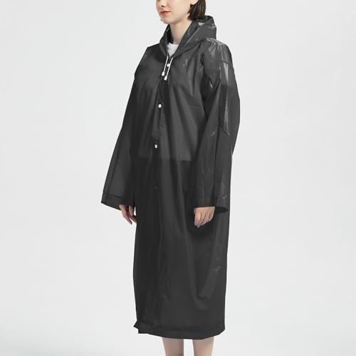 Hooded Rain Ponchos for Adults EVA Reusable Waterproof Raincoats for Women and Men Lightweight Drawstring Rain Gear