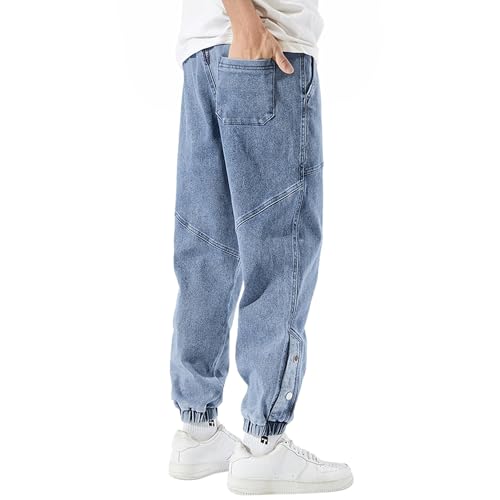 Men's Jeans Denim Joggers Casual Streetwear Pants Hip Hop Jean Sweatpants with Drawstring Elastic Waist