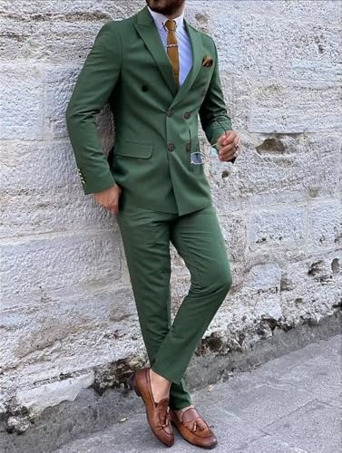 Men's 2 Piece Suits Double Breasted Tuxedo Sets for Men Slim Fit Blazer Jacket Pants Sets for Business Formal Wedding Prom