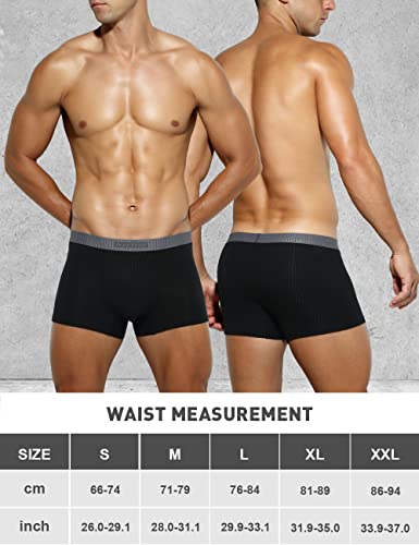 Fabric type: 95% Cotton, 5% SpandexCare instructions: Machine WashOrigin: ImportedFur description: S:26.0-29.1 inch; M:28.0-31.1 inch; L:29.9-33.1 inch; XL:31.9-35.0 inch; XXL:33.9-37.0 inch.Made by moisture-wicking and breathable cotton material,these men underpants are stretchy enough and smooth touch,which will bring you a whole day comfort and fresh.Sexy low rise men boxer briefs with smooth waistband,no binding or riding up,give you an ultimate wearing experience.3D bulge no fly pouch with linings supports your package well and provide a healthy environment.Itch-free comfort with tagless design.Men trunks underwear multipack including 6 bright colors,will be a wonderful gift for male partner,especially for trendy male. Perfect for everyday use. finest materials and excellent craftsmanship ensure long-lasting durability.