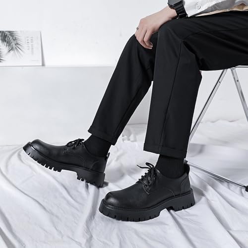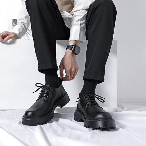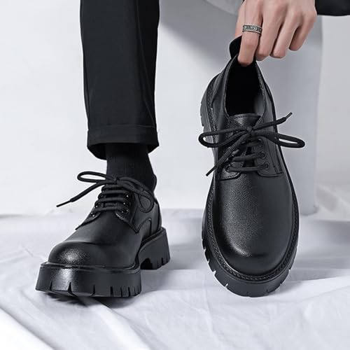 Men's Leather Lace Up Lug Sole Oxfords retro Round Toe Platform Chunky Heel Business Work Dress Shoes Fashion Height-Increasing Casual Derby Shoes
