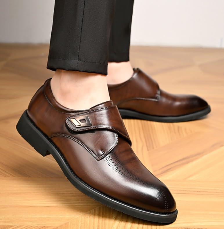 Outer material: PaperClosure type: No-closureSlip-on convenience: Effortless metal buckle closure adds a refined touch to these menβs loafers, perfect for business-casual wear or quick dress-ready styling.timeless wingtip & Oxford Combines the sophistication of Oxford shoes with the relaxed elegance of loafers, featuring subtle broguing for a timeless dress footwear look.leather upper: Smooth, breathable leather molds comfortably to your foot while maintaining a polished appearance for office or semi-formal occasions.Secure double buckle design: Adjustable metal buckles ensure a customized fit while adding a bold accent to these versatile business-casual shoes.Versatile dress footwear: Easily pairs with suits, chinos, or tailored jeans, making these loafers ideal for work, weddings, or elevated everyday wear. Perfect for everyday use. finest materials and excellent craftsmanship ensure long-lasting durability.